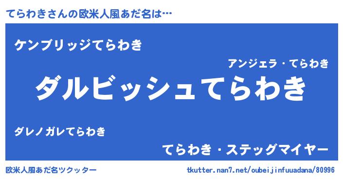 | 意味不明あだ名 | 『永久保存てらわき』『自称てらわき』 |