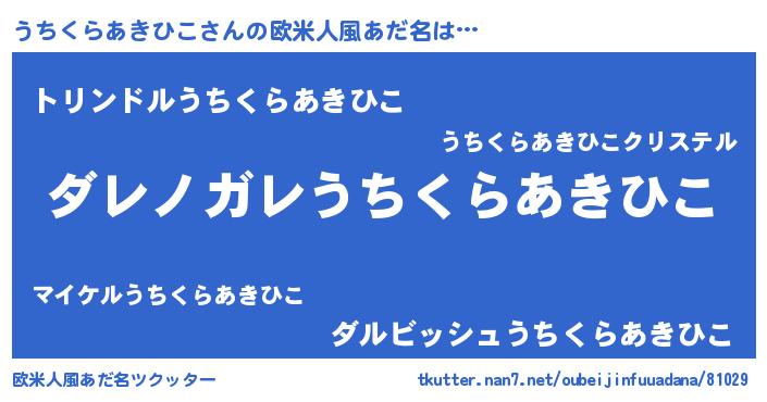 | 男性向けラノベタイトル風あだ名 | 『この素晴らしい世界にうちくらあきひこを!』 |