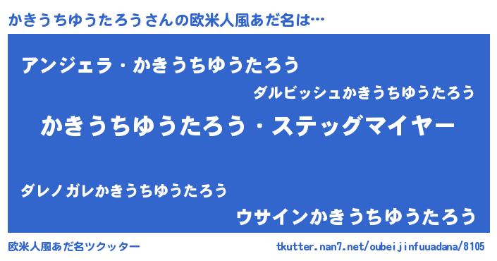 | 意味不明あだ名 | 『とにかく怪しいかきうちゆうたろう』 |