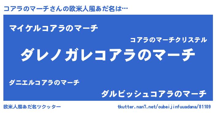 | 男性向けラノベタイトル風あだ名 | 『魔弾の王とコアラのマーチ』 |