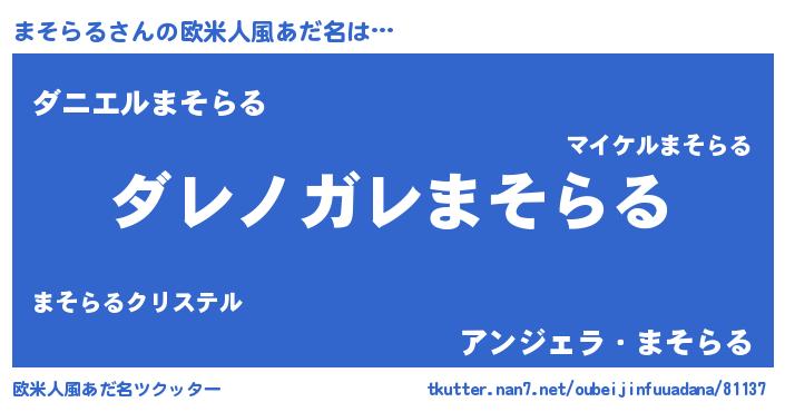 | 女子向けラノベタイトル風あだ名 | 『乙女ゲームの破滅フラグしかない悪役まそらるに転生してしまった…』 |