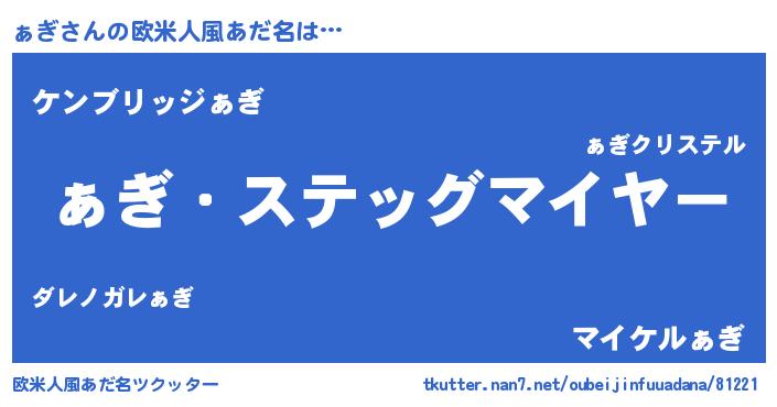 | 女子向けラノベタイトル風あだ名 | 『シンデレラぁぎ家の靴箱館』『闇のぁぎ』 |
