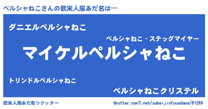 | 男性向けラノベタイトル風あだ名 | 『ペルシャネコアートオンライン』 |