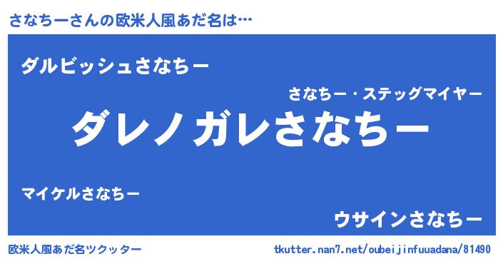 | 意味不明あだ名 | 『住所不定無職さなちー(1歳)』 |