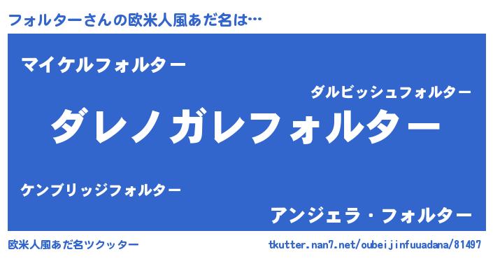 | 男性向けラノベタイトル風あだ名 | 『魔弾の王とフォルター』 |