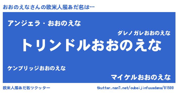| 男性向けラノベタイトル風あだ名 | 『転生したらおおのえなだった件』 |