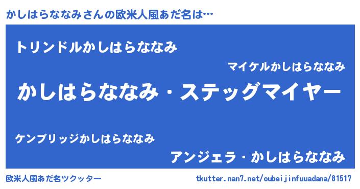 | 男性向けラノベタイトル風あだ名 | 『緋弾のカシハラナナミ』 |