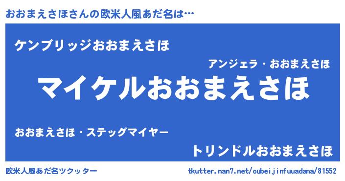 | 女子向けラノベタイトル風あだ名 | 『(仮)おおまえさほのやんごとなき事情』 |
