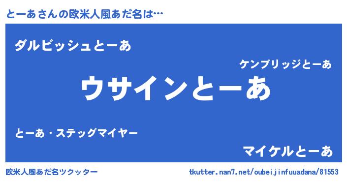 | 意味不明あだ名 | 『とにかく怪しいとーあ』『自称とーあ』 |