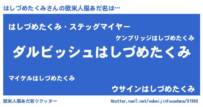 | ヘコむあだ名 | 『はしづめたくみ(遠い目)』『はしお』 |