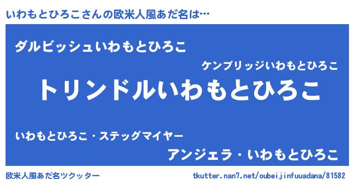 | 男性向けラノベタイトル風あだ名 | 『いわもとひろこ~年齢イコール彼女いない歴の魔法使い~』 |