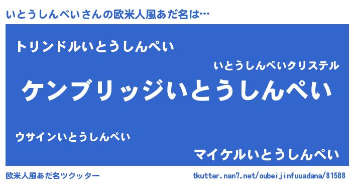 | 男性向けラノベタイトル風あだ名 | 『Re:いとうしんぺいから始める異世界生活』 |