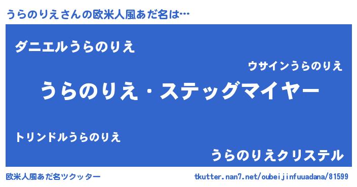 | ヒーロー風カッコイイあだ名 | 『愛の使者うらのりえ』『黄金騎士ウラ』 |