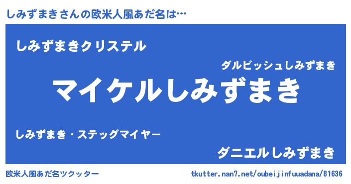 | 男性向けラノベタイトル風あだ名 | 『しみずまきの憂鬱』『緋弾のシミズマキ』 |