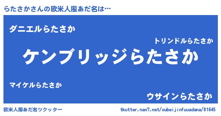 | 男性向けラノベタイトル風あだ名 | 『Re:らたさかから始める異世界生活』 |