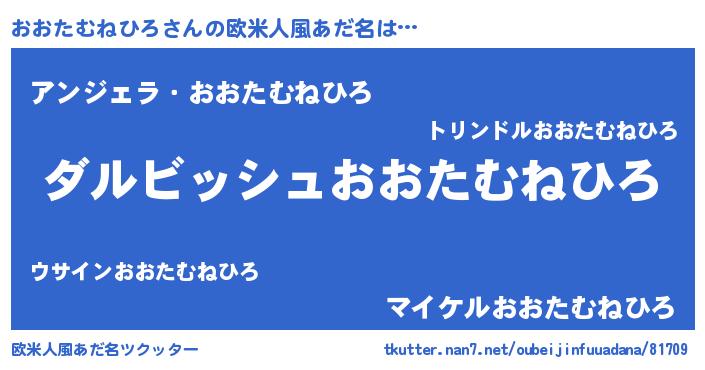 | 女子向けラノベタイトル風あだ名 | 『異世界で失敗しない100のおおたむねひろ』 |