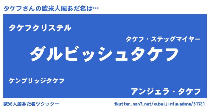| ファンタジー風あだ名 | 『タケディッシュ』『エターナルタケフー』 |