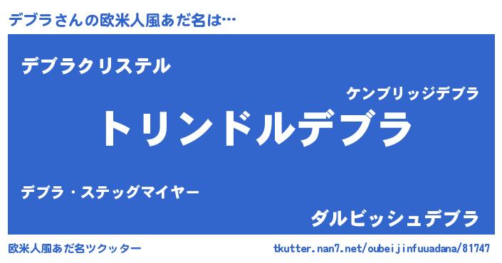 | 意味不明あだ名 | 『なめこ科デブラ属』『永久保存デブラ』 |