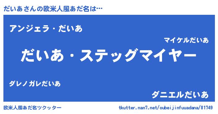 | 男性向けラノベタイトル風あだ名 | 『緋弾のダイア』『はたらくだいあさま!』 |