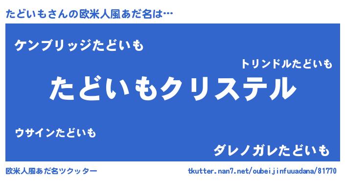 | 女子向けラノベタイトル風あだ名 | 『たどいもの雑貨屋さん』『闇のたどいも』 |