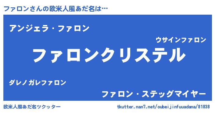 | 男性向けラノベタイトル風あだ名 | 『やはりファロンの青春ラブコメはまちがっている 』 |