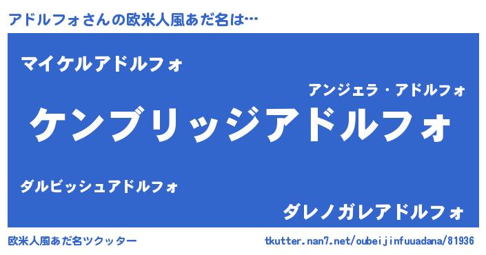 | 女子向けラノベタイトル風あだ名 | 『アドルフォなんてお断りですっ。』 |