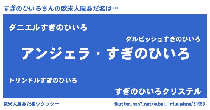 | 男性向けラノベタイトル風あだ名 | 『すぎのひいろに滅ぼされるだけの簡単なお仕事です』 |