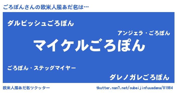 | 男性向けラノベタイトル風あだ名 | 『ごろぽんの憂鬱』『魔弾の王とごろぽん』 |