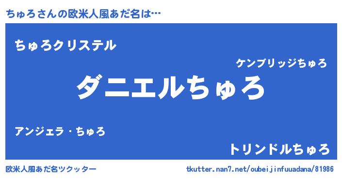 | 意味不明あだ名 | 『眠気覚ましガムちゅろ味』『自称ちゅろ』 |