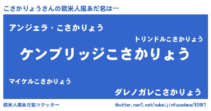 | 意味不明あだ名 | 『自称こさかりょう』 |
