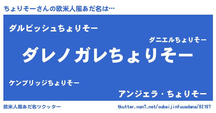 | 男性向けラノベタイトル風あだ名 | 『魔弾の王とちょりそー』 |