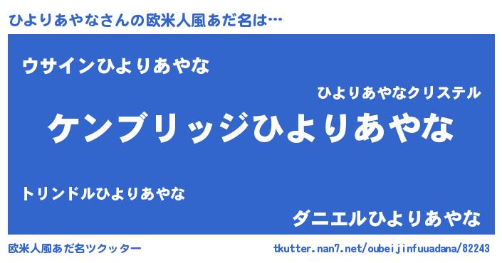 | ポケモン風あだ名 | 『ヒヨセウス』『ヒヒヨリアヤナ』 |