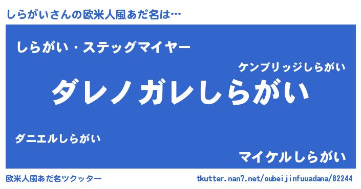| 男性向けラノベタイトル風あだ名 | 『この素晴らしい世界にしらがいを!』 |