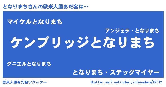 | 意味不明あだ名 | 『自称となりまち』『ペロリンとなりまち』 |