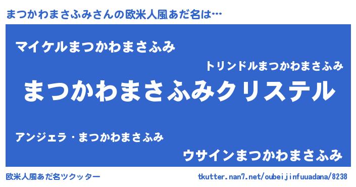| 男性向けラノベタイトル風あだ名 | 『やはりまつかわまさふみの青春ラブコメはまちがっている 』 |