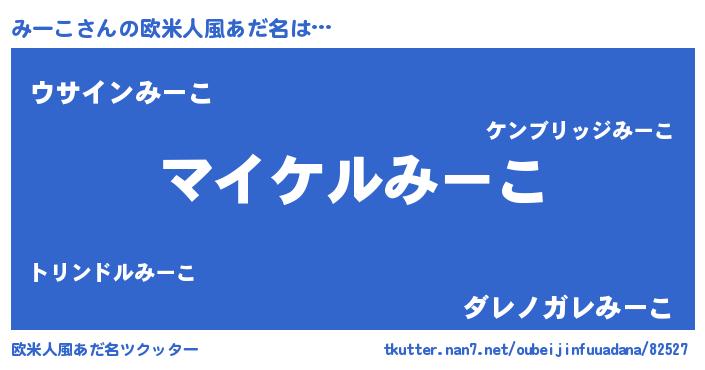 | 男性向けラノベタイトル風あだ名 | 『みーこの憂鬱』『魔弾の王とみーこ』 |