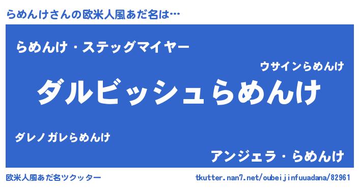 | 男性向けラノベタイトル風あだ名 | 『らめんけという概念が存在しない退屈な世界 』 |