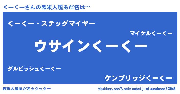 | 男性向けラノベタイトル風あだ名 | 『くーくーの嫁は女の子じゃないと思った?』 |