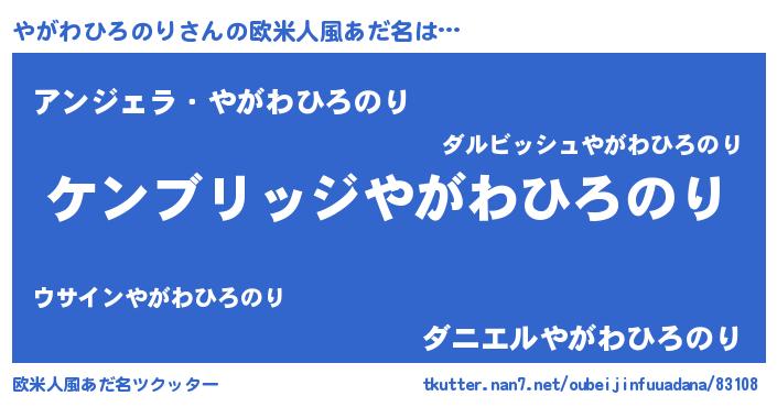 | 女子向けラノベタイトル風あだ名 | 『やがわひろのりなんてお断りですっ。』 |