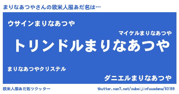 | 男性向けラノベタイトル風あだ名 | 『マリナアツヤスレイヤー』 |