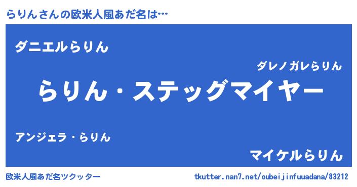 | 男性向けラノベタイトル風あだ名 | 『うちのらりんが世界を掌握している!』 |