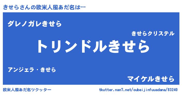 | 恥ずかしいあだ名 | 『プリティーきせら』『きせっちょ』 |