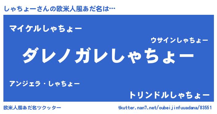 | 意味不明あだ名 | 『住所不定無職しゃちょー(86歳)』 |