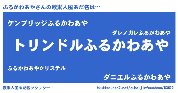 | 男性向けラノベタイトル風あだ名 | 『ふるかわあや~年齢イコール彼女いない歴の魔法使い~』 |