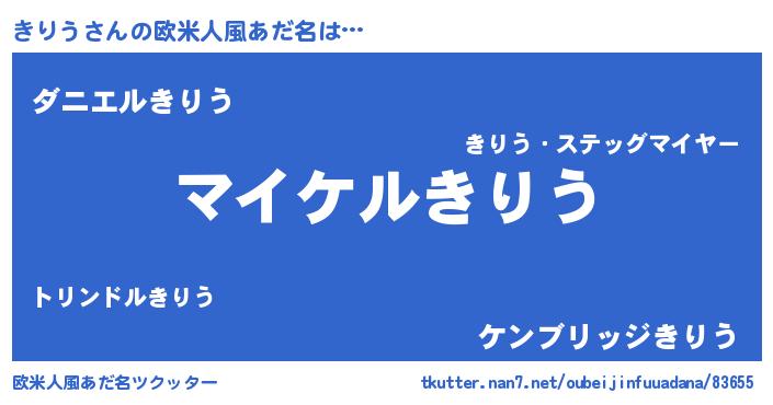 | 男性向けラノベタイトル風あだ名 | 『きりうの憂鬱』『キリウスレイヤー』 |