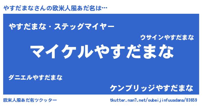 | 男性向けラノベタイトル風あだ名 | 『ヤスダマナアートオンライン』 |