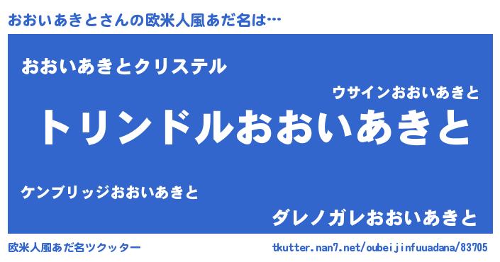 | 男性向けラノベタイトル風あだ名 | 『転生したらおおいあきとだった件』 |