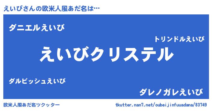 | ヘコむあだ名 | 『豆乳』『えいび(笑)』『えいぷりん』 |