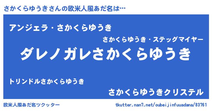 | 男性向けラノベタイトル風あだ名 | 『この素晴らしい世界にさかくらゆうきを!』 |