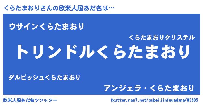 | 女子向けラノベタイトル風あだ名 | 『くらたまおりの玉の輿計画!』 |